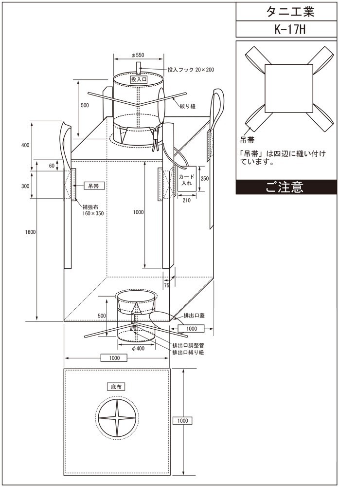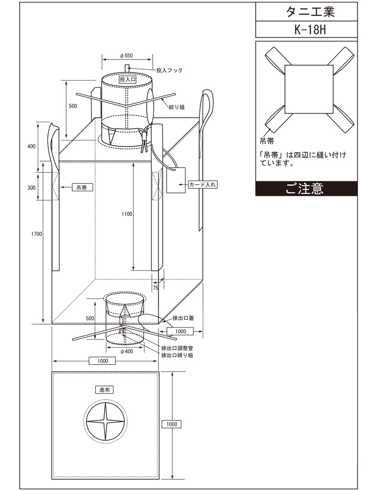 ホーム > コンテナバッグ > 形状の組み合わせで選ぶ > 耐荷重で選ぶ >(角型)4点吊り投入排出口タイプ