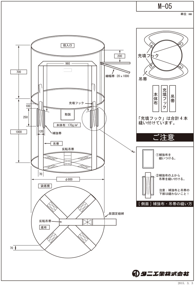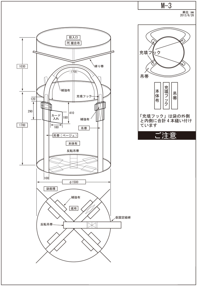 ホーム > コンテナバッグ > 形状の組み合わせで選ぶ > 耐荷重で選ぶ > アスベスト > 丸型基本(上部きんちゃく)