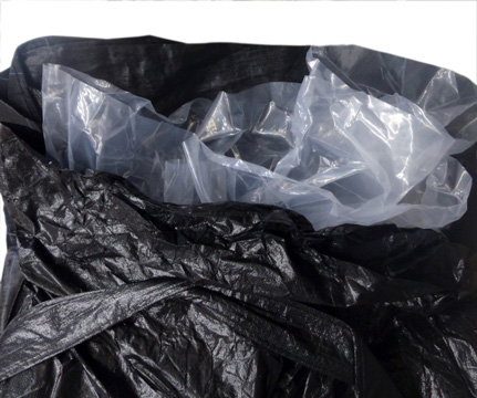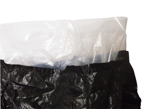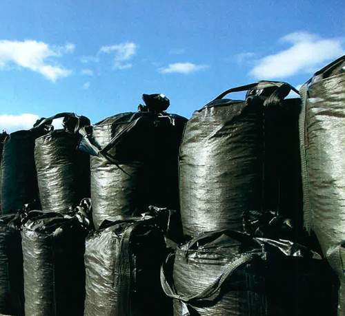 2トンの耐荷重および3年相当の野外設置が可能な高耐候性の大型土のうフレコンバッグに、厚み0.15mmの内袋を装着しました。