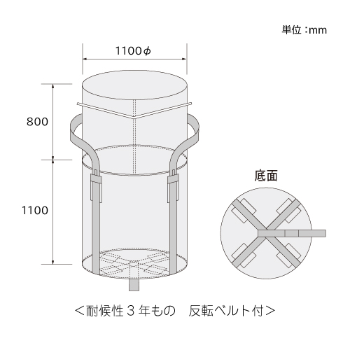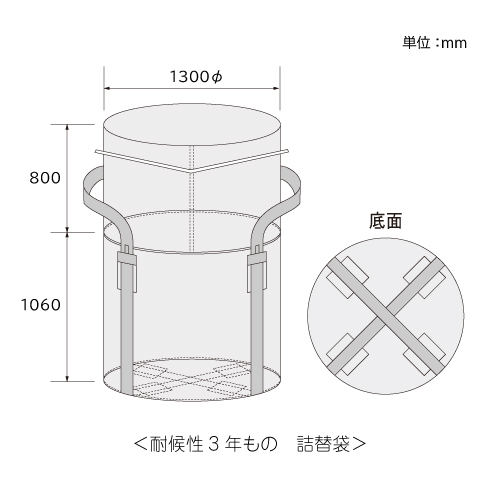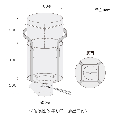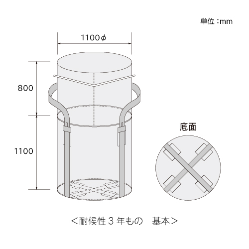 約3年相当の野外設置が可能な高耐候性大型土のうフレコンバッグ。