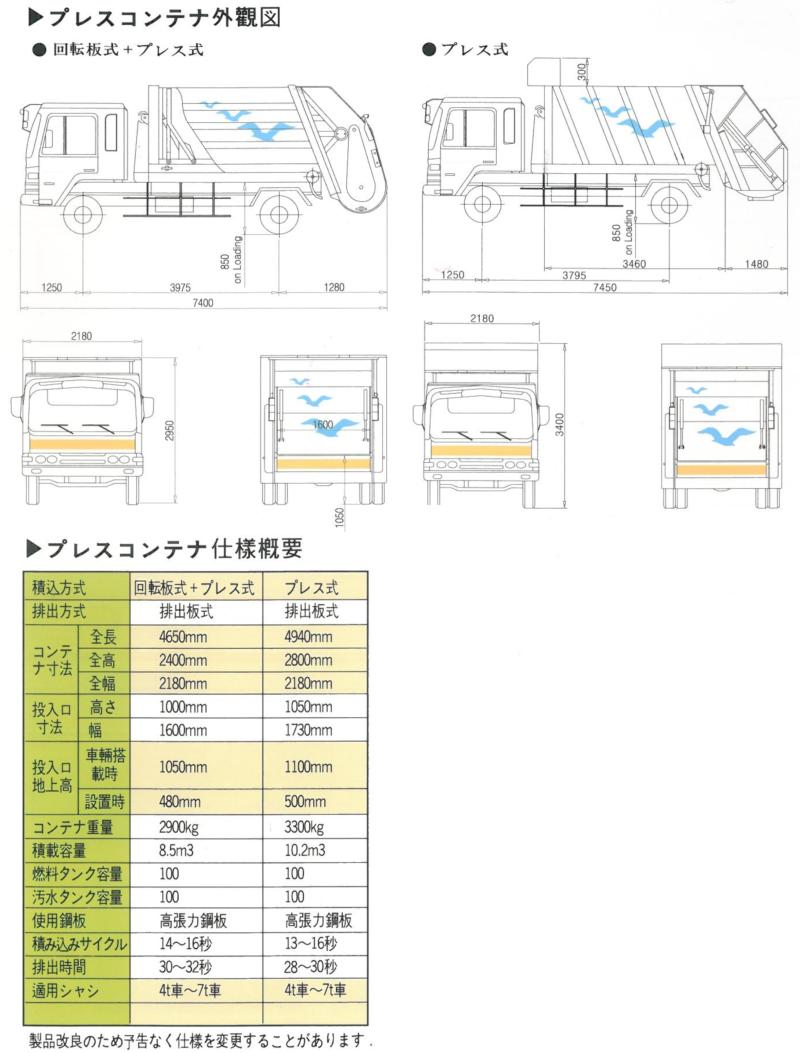 | プレス式 | 4940×2800x2180 | 1050x1730 | 3300 | 100 | 100 |
