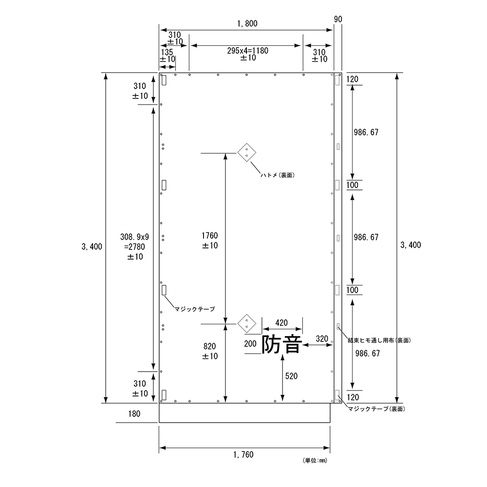 ※品番によりハトメピッチ(穴の間隔)に若干違いがあります、混在してご使用する場合はご注意ください。