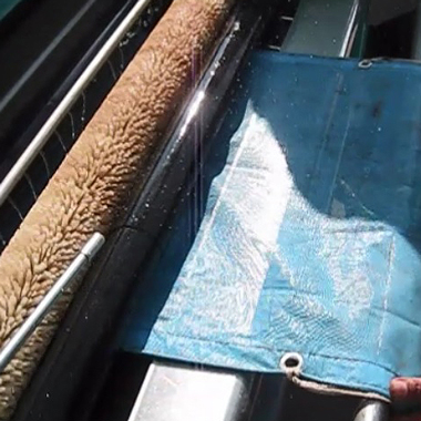 防音シートや防炎シートなど、建築シート専用の洗浄機です。水洗浄なので、冷化学薬品を使わずに洗うことができ、変色を抑えます。