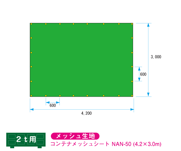 | NAN-50 | 2~4トン | 4.2×3.0 | 24 | 20 | 5 | ラッセル メッシュ |